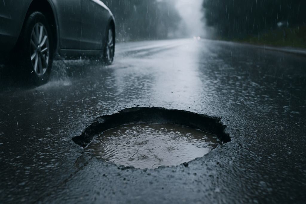 - Potholes and uneven pavement – Can cause drivers to lose control, damage tires, or swerve suddenly.